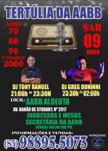 🎶✨ Vem aí a Tertúlia da AABB! Prepare-se para uma noite de muita música e nostalgia com os grandes sucessos dos anos 70, 80, 90 e início dos anos 2000.